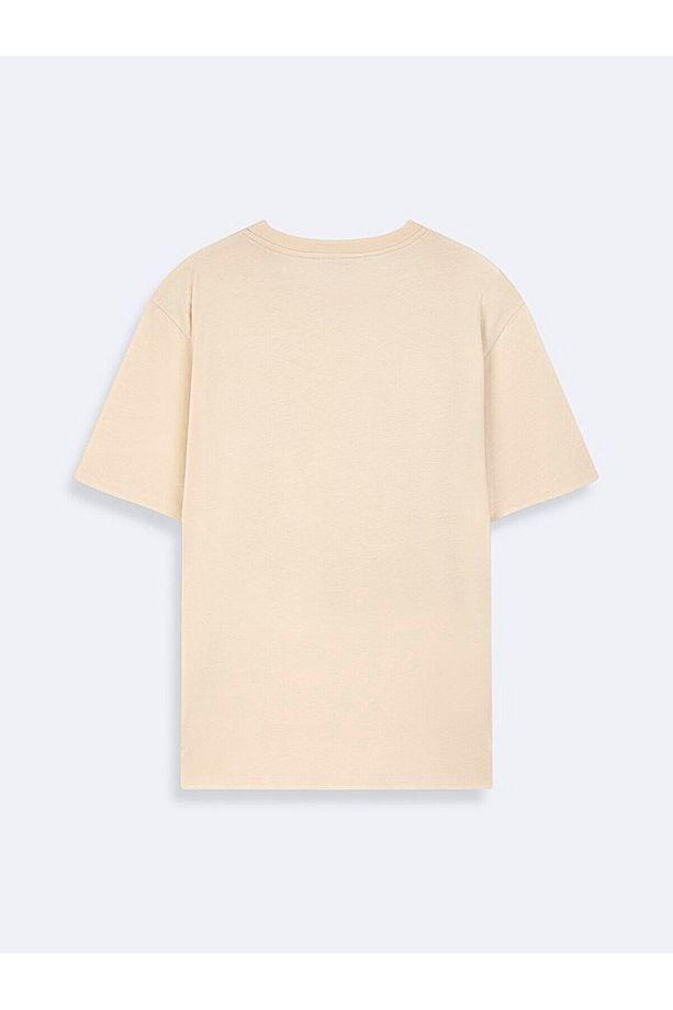 Avva Erkek Bej Bisiklet Yaka Baskılı Oversize Fit T-Shirt A41Y1168