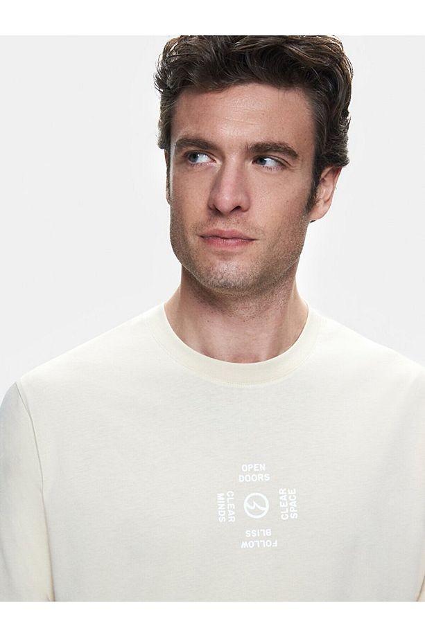 Ltb Kısa Kollu Sıfır Yaka Baskılı Regular Bej T-shırt