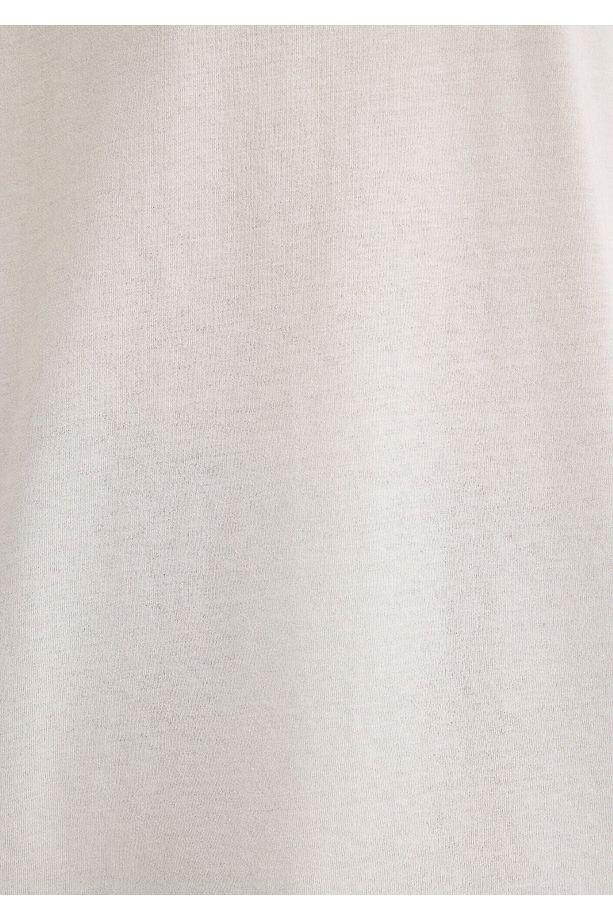 GRIMELANGE Jett Erkek Oversize Fit %100 Organik Pamuk Kalın Dokulu Bisiklet Yakalı Açık Gri T-shirt