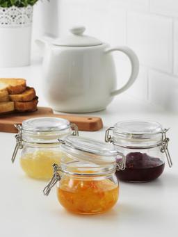 Комплект из 3 баночек с крышками объёмом 13 cl каждая. Отлично подходит для хранения продуктов, напитков или соусов. Крышки плотно закрываются, изготовлены из прочного и чистого материала.