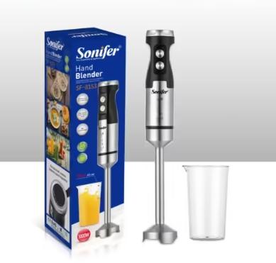 Электрический ручной блендер Sonifer SF-8153, Высокоэффективный и мощный мотор из чистой меди, Верхняя ручка управляет плавной регулировкой скорости, Две кнопки управления с функцией турбо, Съемные части для легкой очистки, Вал блендера с ножом из нержавеющей стали, С мерным стаканом на 700 мл, AC220-240V 50/60Hz 1000W