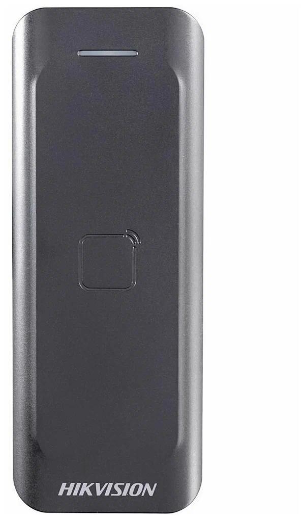 Бесконтактный RFID-считыватель карт формата EM-Marine от бренда Hikvision. Предназначен для работы в составе системы контроля доступа (СКУД). 8-битный высокоскоростной процессор. Частота считывания: 125 кГц. Дальность считывания: 30–50 мм. Питание: DC 12 В. / Рабочий ток: 160 мА. Потребление: максимум — 2 Вт. Материал корпуса: пластик.