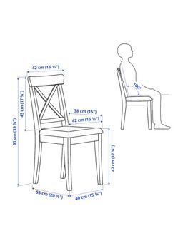 Стул INGOLF — это классический и прочный деревянный стул из массива дерева в деревенском стиле, который подходит для столовой, кухни или рабочего места. Сиденье: ДВП, хлопок, полиэстер. Протирать мягким мыльным раствором. Машинная стирка при температуре не выше 40°C, обычный режим. Протестировано на: 110 кг Ширина : 40 см Глубина : 53 см Рост : 91 см Ширина сиденья : 42 см Глубина сиденья : 38 см Высота сиденья : 47 см