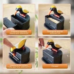 Всегда под рукой стильный пластиковый держатель для хранения зубочисток. Достаточно одного нажатия на кнопку и палочка выпрыгивает. Современный дизайн подойдет под любой интерьер. Вмещает 50-80 зубочисток. Рекомендации: Перед использованием необходимо правильно расположить зубочистки вертикально и встряхнуть несколько раз, чтобы они ровно распределились внутри. Это необходимо, чтобы механизм работал без сбоя.