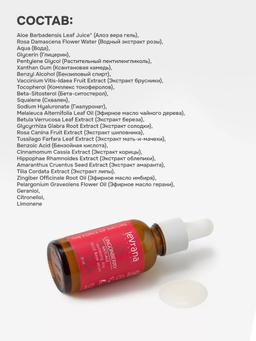 Лёгкое омоложение и защита для всех типов кожи. Сыворотка на основе гидролата дамасской розы увлажняет, разглаживает морщины и замедляет старение, даря коже тонус и сияние. Подходит для лица и области вокруг глаз, рекомендовано с 25 лет. Что делает: — Увлажняет и восстанавливает клетки эпидермиса — Разглаживает морщины и подтягивает контур лица — Защищает от пигментации и вредного воздействия окружающей среды — Снимает воспаления и улучшает цвет лица Ключевые компоненты: 🔸 Экстракт брусники — мощный антиоксидант, улучшает метаболизм, тонизирует кожу 🔸 Гидролат дамасской розы — увлажняет, разглаживает, замедляет старение 🔸 Экстракт корицы — подтягивает, улучшает цвет лица, ускоряет обновление клеток 🔸 Экстракт солодки — предотвращает пигментацию, осветляет кожу 🔸 Экстракт мать-и-мачехи — повышает упругость, разглаживает морщины Особенности: ✔️ 100% натуральный состав ✔️ Подходит для всех типов кожи, включая чувствительную ✔️ Идеально для дневного ухода и зоны вокруг глаз ✔️ Рекомендуется с 25 лет Способ применения: Нанести 2–3 капли на очищенную кожу лица и вокруг глаз, распределить лёгкими движениями. Использовать утром перед нанесением крема. Предупреждение: Возможна индивидуальная непереносимость ингредиентов. Состав: Aqua (Вода), Aloe Barbadensis Leaf Juice* (Алоэ вера гель), Rosa Damascena Flower Extract (Водный экстракт розы), Glycerin (Глицерин), Pentylene Glycol (Растительный пентиленгликоль), Tocopherol (Комплекс токоферолов), Beta-sitosterol (Бета-ситостерол), Squalene (Сквален), Sodium Hyaluronate (Гиалуронат), Xanthan Gum (Ксантановая камедь), Benzyl Alcohol (Бензиловый спирт), Vaccinium Vitis-Idaea Fruit Extract (Экстракт брусники), Melaleuca Alternifolia Leaf Oil (Эфирное масло чайного дерева), Betula Alba Leaf Extract (Экстракт берёзы), Glycyrrhiza Glabra Root Extract (Экстракт солодки), Rosa Canina Fruit Extract (Экстракт шиповника), Tussilago Farfara Leaf Extract (Экстракт мать-и-мачехи), Sodium Benzoate (Натрия бензоат), Potassium Sorbate (Калия сорбат), Benzoic Acid (Бензойная кислота), Cinnamomum Cassia Extract (Экстракт корицы), Hippophae Rhamnoides Extract (Экстракт облепихи), Amaranthus Cruentus Seed Extract (Экстракт амаранта), Tilia Cordata Extract (Экстракт липы), Zingiber Officinale Root Oil (Эфирное масло имбиря), Pelargonium Graveolens Flower Oil (Эфирное масло герани), Geraniol, Citronellol, Limonene.