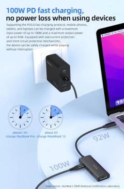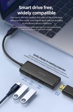 Док-станция Huntkey D04 4-в-1 с разъемом USB-C Бренд: Huntkey Название: Док-станция 4-в-1 USB-C Модель: HKDC1500400 Размеры: 82 мм (длина) × 30 мм (ширина) × 12 мм (высота) Порты: 1 × HDMI 1 × USB 3.0 1 × USB 2.0 1 × USB-C PD Разрешение HDMI: 4K × 2K / 30 Гц Длина кабеля: 150 мм Входная мощность: до 100 Вт Выходная мощность: до 92 Вт Совместимые системы: Windows / macOS / Linux / iOS / Android / iPadOS / HarmonyOS