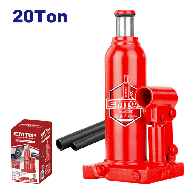 EMTOP EHJK12001 — это гидравлический бутылочный домкрат, предназначенный для подъёма тяжёлой техники, грузовиков, строительного оборудования и других объектов весом до 20 тонн. Компактный, прочный, с защитным клапаном от перегрузки. Тип: гидравлический, бутылочный Грузоподъёмность: 20 тонн Минимальная высота подъёма: 240 мм Максимальная высота подъёма: 460 мм Ход штока: 220 мм Вес (нетто): 8,7 кг Материал корпуса: металл