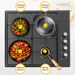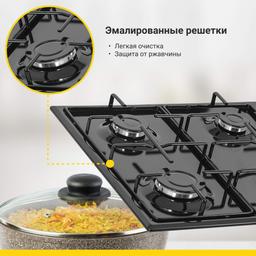 Газовая варочная панель с независимой конфигурацией. Имеет верхнее эмалированное покрытие, механическое управление и 4 конфорки. Оснащена кнопкой зажигания (кноб).