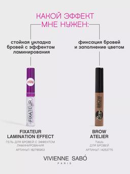 Характеристики Цвет: №01 ПРОЗРАЧНЫЙ Объем: 6ml Описание FIXATEUR LAMINATION EFFECT — гель для бровей от VIVIENNE SABÓ для экстрасильной фиксации с эффектом ламинирования на 16 часов. Благодаря его суперстойкой формуле и удобной щеточке получится уложить даже непослушные и жесткие брови. Гель с ультралегкой текстурой мгновенно придает форму бровям и моментально фиксирует их без склеивания и белого налета. Спиралевидная щеточка среднего размера с ворсинками набирает нужное количество массы, чтобы придать желаемую форму даже жестким бровям, добавить им объем и текстурность. С FIXATEUR LAMINATION EFFECT легко создать естественную укладку и фиксацию с эффектом ламинирования без похода в салон. Способ применения Наносите гель на брови как самостоятельный продукт, либо после оформления тенями или карандашом. Контролируйте количество геля, чтобы добиться эффекта ламинирования или легкой естественной укладки.