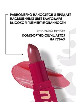 Характеристики Цвет: №04 QUEEN Объем: 4gr Описание Помада с устойчивой текстурой My Lip Symbol комфортно ощущается на губах, равномерно наносится и придает насыщенный цвет благодаря высокой пигментированности. Касторовое масло в составе питает, смягчает и разглаживает кожу губ. Текстура имеет приятный аромат сочного винограда. Роскошный футляр алого цвета с матовым покрытием soft-touch и золотым леттерингом станет отражением вашего характера и статуса. Способ применения Для плотного покрытия и насыщенного оттенка наносите помаду из стика. Чтобы покрытие было легким и полупрозрачным, аккуратно наносите подушечками пальцев похлопывающими движениями.
