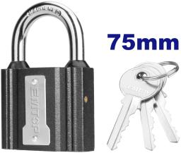 Навесной замок Emtop Навесные замки Emtop предназначены для защиты дверей, ворот, складских помещений и шкафов. Изготавливаются из прочных материалов, устойчивых к взлому и коррозии. Материал корпуса: Латунь или высокопрочный чугун. Дужка: Закаленная сталь (повышенная защита от перепиливания). Механизм: Латунный цилиндр с набором ключей 3 штуки Особенности: Автоматическое защелкивание или закрытие ключом. Производство: Китай.