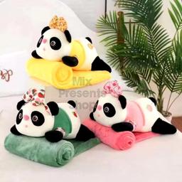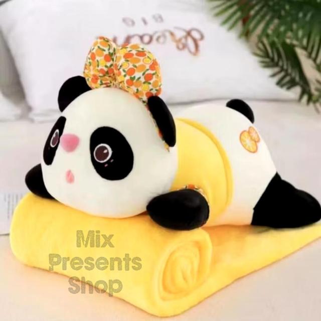 Игрушка мягкая "Панда" с пледом 3в1 (игрушка, плед, подушка) желтая