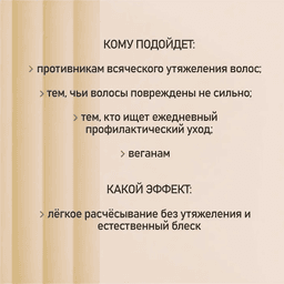 Для чего: Интенсивное восстановление структуры повреждённых волос без утяжеления. Укрепляет, защищает и придаёт волосам силу и гладкость. Что решает: ✔ Восстанавливает кутикулу и укрепляет кортекс волоса ✔ Защищает от дальнейших повреждений (укладка, солнце, ветер) ✔ Не утяжеляет и не жирнит волосы ✔ Повышает прочность и эластичность ✔ Облегчает расчёсывание и укладку ✔ Особенно эффективен для повреждённых и сухих кончиков Активные компоненты и их свойства: 🔹 Фитокератин (гидролизованные белки сои и риса) — совпадает с природным кератином по аминокислотному составу — проникает в кутикулу и кортекс, восстанавливает структуру волоса изнутри — содержит натуральный аргинин, работающий как «катионный мостик» для лучшего проникновения 🔹 Протеин овса (специально обработанный) — обладает положительным зарядом, прочно связывается с повреждёнными участками — образует защитные белковые "заплатки", восстанавливая гладкость кутикулы и предотвращая ломкость Подходит для: – Повреждённых, окрашенных, ломких и сухих волос – Волос после термического воздействия (фен, плойка) – Тонких волос, нуждающихся в восстановлении, без утяжеления – Повседневного ухода за кончиками волос Способ применения: Равномерно распылить на влажные или сухие волосы, уделяя особое внимание повреждённым концам. Не смывать. После высыхания уложить волосы как обычно. Примечание: не содержит силиконов, масел и утяжеляющих компонентов. Возможна индивидуальная непереносимость натуральных белков.