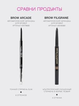 Характеристики Цвет: №03 ТЕМНО-КОРИЧНЕВЫЙ Объем: 0.2gr Описание BROW FILIGRANE — автоматический карандаш для бровей от VIVIENNE SABÓ с эффектом микроблейдинга. Эта техника ручной прорисовки волосков требует филигранной точности и аккуратности. Уникальность карандаша — ультраплоский скошенный стержень в форме двустороннего лезвия, который можно использовать сразу двумя способами. Если тебе нужно прорисовать отдельные волоски и придать бровям естественный вид, воспользуйся острым тонким кончиком грифеля. А если необходимо создать графичные брови и заполнить их цветом, используй плоскость грифеля для натуральной растушевки. Щеточка-расческа на другом конце карандаша поможет равномерно распределить оттенок и придать бровям нужную форму. Формула на основе натуральных восков обеспечивает стойкость текстуры. Карандаш BROW FILIGRANE в четырех оттенках для всех цветотипов позволяет филигранно прорисовывать каждый волосок, делает брови густыми, объемными и невероятно естественными. Способ применения Использовать по назначению.