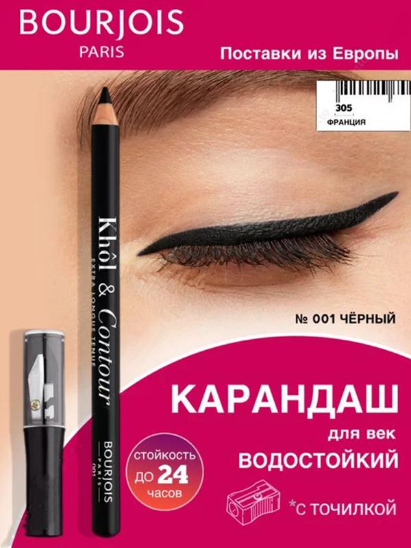 Карандаш для глаз с точилкой - Bourjois Khol & Contour Eye Pencil №001