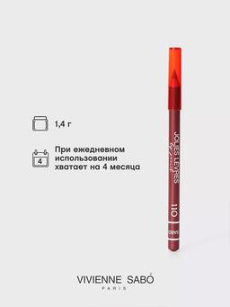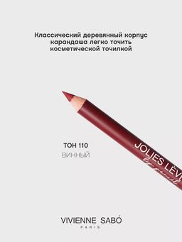 Характеристики Цвет: №110 ВИННЫЙ Объем: 1.4gr Описание Карандаши для губ Jolies Levres благодаря насыщенному цвету очень легки в использовании. Вы одним касанием получаете идеальный контур или полный макияж губ, который будет держаться весь день. Легкая текстура предотвращает растекание губной помады и блеска. А широкая палитра оттенков позволит выбрать тот самый "свой" цвет! Способ применения Очертите контур губ и растушуйте линию внутрь, чтобы мягко соединить с помадой или блеском. Или накрасьте карандашом всю поверхность губ.