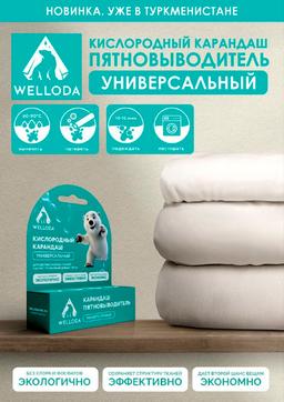 Универсальный кислородный карандаш Welloda — это эффективное средство для удаления трудновыводимых пятен с цветных и белых тканей. Основан на кислородной технологии, он сочетает в себе экологичность и мощную силу устранения загрязнений. Эффективность: Удобный карандаш легко справляется со сложными пятнами, такими как кофе, вино, жир и многое другое. Безопасность: Подходит для использования на всех типах тканей, включая деликатные. Не вызывает повреждений даже при частом использовании. Экономичность: Компактный формат позволяет рассчитывать средство на долгое время, сохраняя бюджет. Экологичность: Содержит природные компоненты, что способствует минимальному воздействию на окружающую среду. Способ применения: Нанесите карандаш непосредственно на загрязненное место, оставьте на несколько минут, затем смойте водой или обработайте в стирке. Преимущества: Удобство в использовании благодаря портативному формату. Эффективное решение для быстрой помощи в домашних условиях. Подходит для самых распространенных типов загрязнений. Проверьте, как легко и быстро можно вернуть вещам первозданный вид с универсальным кислородным карандашом Welloda!