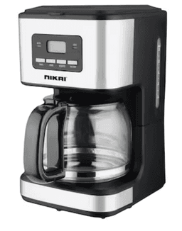 Кофемашина Nikai NCM2120DSX — это капельная кофеварка мощностью 900 Вт с цифровым дисплеем и стеклянным кувшином объемом 1,5 л, рассчитанная на приготовление до 12 чашек кофе