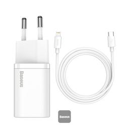 Комплекты Baseus Super Si Quick Charger 1C 20W с кабелем Baseus Simple Wisdom Type-C для iPhone, 1 м,