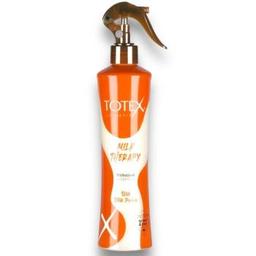 Двухфазный несмываемый кондиционер Totex Hair Milk Therapy (400 мл) Подарите вашим волосам нежность шелка и силу молочных протеинов. Totex Milk Therapy — это эффективное средство для интенсивного восстановления и защиты сухих и поврежденных волос. Уникальный состав с молочным белком укрепляет структуру волоса изнутри, делая их невероятно мягкими и блестящими. Преимущества: Восстановление структуры: Молочные протеины регенерируют поврежденные участки волоса. Интенсивное увлажнение: Устраняет сухость и ломкость, поддерживая водный баланс. Мгновенный эффект: Облегчает расчесывание и предотвращает пушение. Защита и аромат: Обладает приятным сливочным ароматом и защищает от воздействия внешних факторов. Способ применения: Встряхните флакон до полного смешивания фаз. Нанесите на чистые, подсушенные полотенцем или сухие волосы. Не смывать! Подходит для ежедневного использования.