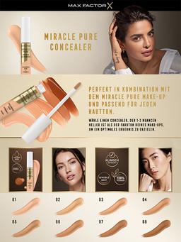Характеристики Цвет: №03 Объем: 7.8ml Описание Вдохновленный уходом за кожей, разработанный Max Factor, новый консилер Miracle Pure Concealer, который ухаживает за кожей, пока вы его носите. Легкая формула содержит гиалуроновую кислоту, витамин С и пептиды. Он дает естественное покрытие и прекрасно работает на лице и под глазами, обеспечивая мягкое покрытие без складок в течение всего дня - сияние, осветление и увлажнение на 24 часа. Клинически и дерматологически протестировано, подходит для чувствительной кожи; с супермягким гибким и точным аппликатором Способ применения Нанесите точечный консилер непосредственно на пятна, под глазами, вокруг носа и везде, где требуется дополнительное покрытие. Кончиками пальцев или спонжем для основы нанесите консилер, чтобы слегка растушевать.