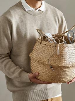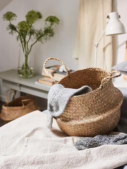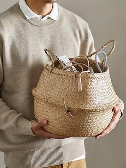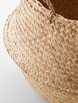 Эта плетеная корзина имеет уникальный вид, потому что она сделана вручную. Материал Водоросли, прозрачный лак Высота: 32 см. Диаметр: 25 см.