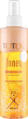 Жидкий спрей-крем для волос Totex Honey с экстрактом мёда (300 мл) Природная сила мёда для восстановления и невероятной мягкости ваших волос! Totex Honey Liquid Hair Cream — это интенсивно питательное средство, созданное для преображения сухих, пористых и поврежденных волос. Мёд, входящий в состав, действует как природный увлажнитель, запечатывая влагу внутри волоса и придавая локонам роскошную шелковистость. Преимущества: Глубокое питание: Экстракт мёда насыщает волосы витаминами и ферментами, восстанавливая их жизненную энергию. Смягчение и эластичность: Делает жесткие и непослушные волосы мягкими, эластичными и легкими в укладке. Блеск и гладкость: Разглаживает пушащиеся волосы и секущиеся кончики, придавая им здоровое сияние. Защитный барьер: Окутывает каждый волос невесомой вуалью, защищая от термических повреждений и ломкости. Способ применения: Тщательно взболтайте флакон. Равномерно распылите на чистые, подсушенные полотенцем или сухие волосы. Бережно распределите средство по всей длине. Не смывать.