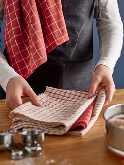 Кухонное полотенце RINNIG — ваш незаменимый помощник на кухне при готовке и сушке посуды. Изготовлено из хлопка и вискозы, обладает высокой впитывающей способностью. Красно-темный полосатый дизайн придает кухне яркий и уютный вид. Области Применения: Для вытирания посуды, протирки столов или вытирания рук на кухне. Технические Характеристики Цвет: Красный и Темно-полосатый Материал: Хлопок Размеры: Ширина: 45 см, Длина: 60 см. Особенности: Высокая впитывающая способность.