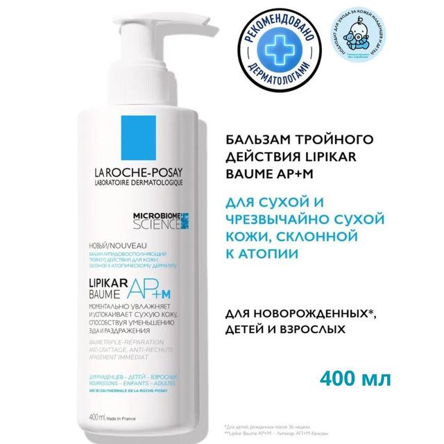 La Roche-Posay Lipikar AP+M Липидовосстанавливающий увлажняющий бальзам для лица и тела тройного действия,,400мл