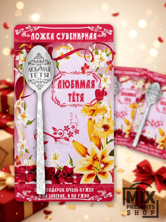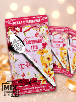 Ложка сувенирная "Любимая тётя" (чайная) на открытке, с красивым пожеланием. Материал: нержавеющая сталь. Метод нанесения: лазерная гравировка. Размер открытки: 10 × 17.5 см Креативный, недорогой а самое главное полезный подарок! На обратной стороне открытки красивое пожелание в виде стихотворения. Такой подарок порадует любого получателя, и будет напоминать о себе долгие годы.