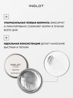 Характеристики Объем: 30gr Описание Мыло фиксатор гель для бровей Brow soap от INGLOT является незаменимым продуктом практически для любого макияжа. Гель для бровей прочно фиксирует даже самые непослушные волоски на целый день, без ощущения тяжести. Мыло для бровей придает эффект ламинирования. Аккуратно уложенные брови, уже давно являются одним из главных трендов макияжа лица, независимо от того, любите ли вы графичные брови или подчеркиваете их очень деликатно. Способ применения Придайте бровям нужную форму щеточкой с набранным на нее гелем.