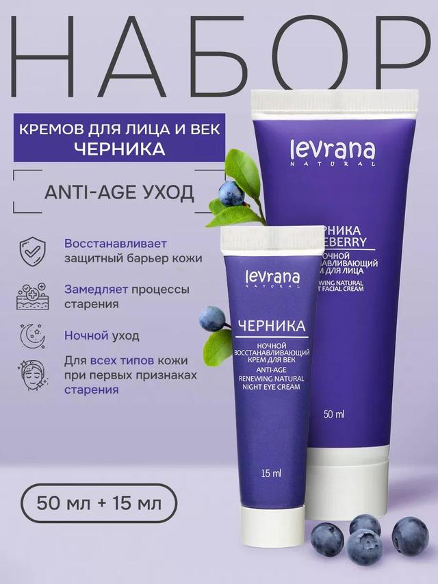 Набор антивозрастных кремов «Черника» для лица и век, 50 мл + 15 мл
