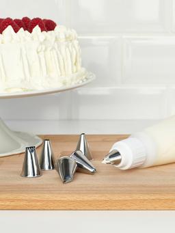 Набор для украшения торта белого цвета, идеально подходит для красивого оформления десертов и тортов. Позволяет создавать разнообразные узоры и добавлять изысканность вашим блюдам.