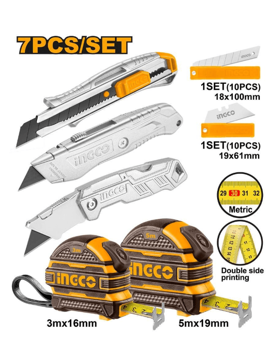 Набор ручного инструмента INGCO HMK23039 7 шт. рулетки и ножи