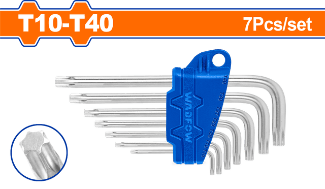 Набор ключей torx 7 шт. Размер: Т10, Т15, Т20, Т25, Т27, Т30, Т40.