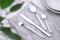 Ardesto Gemini Lucca AR1924LCS — набор столовых приборов из нержавеющей стали с зеркальной полировкой. Характеристики: количество предметов: 24; количество персон: 6; комплектация: 6 столовых ножей, 6 вилок, 6 столовых ложек, 6 чайных ложек; длина: нож — 22,2 см, вилка — 20,4 см, ложка — 20,1 см, чайная ложка — 13,6 см; вес: нож — 0,08 кг, вилка — 0,04 кг, ложка — 0,045 кг, чайная ложка — 0,018 кг; вес с упаковкой: 1,24 кг.