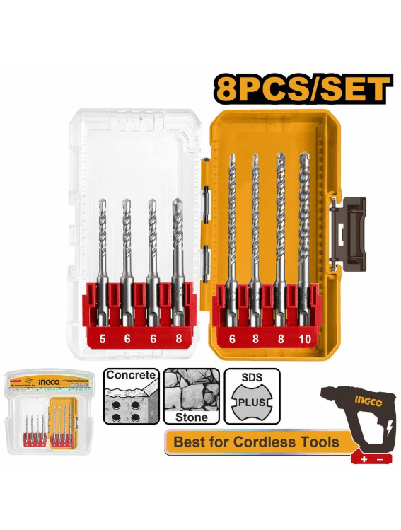 Набор из 8 сверл SDS plus для перфоратора 5*110,6*110,6*110,8*110 6*160,6*160,8*160,10*160 Упаковано в двойной блистер