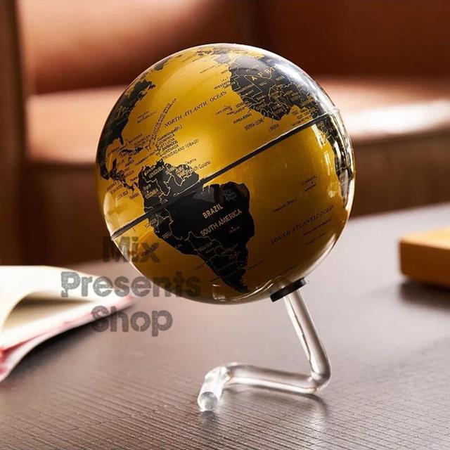 Настольный вращающийся глобус - это украшение рабочего стола и реальный глобус, на котором можно рассмотреть страны, острова, моря, океаны и их названия. Глобус медленно вращается на причудливо изогнутой подставке. Отличная идея для подарка! Размер: 15см Цвет: микс (синий, черный, коричневый) Работает от 1 батарейки типа АА