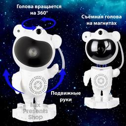 Проектор звездного неба и туманностей с функцией музыкальной Bluetooth колонки подарит полное погружение в новую реальность. С его помощью вы с детьми отправитесь в удивительное путешествие в открытый космос прямо у вас дома! Ночник проектор наполнит комнату волшебным сиянием звезд, туманностей и луны. Атмосферная светомузыка позволит расслабиться, сделав обстановку уютной и комфортной. Лазерный проектор подарит сказку и спокойный сон вашим детям. Ребенок уснет без вашей помощи! Есть возможность установить таймер для отключения через определенное время. Проектор звездного неба можно использовать, как ночник детский и как освещение для дома. С его помощью можно легко устроить незабываемый романтический вечер или приятные посиделки в кругу семьи. Такой космонавт это прекрасный подарок для людей любого возраста! Стильный дизайн ночничка в виде фигурки космонавта привлечет внимание с первой секунды и станет настоящим украшением любого дома!