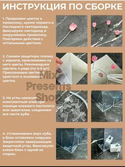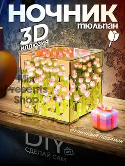 Ночник светильник 3D "Куб с тюльпанами" (сделай сам) (поставляется в разобранном виде) Ночник куб с тюльпанами отличное интерьерное решение, которое привнесет в ваш дом атмосферу волшебства. Эта стильная новинка 2024 года имеет удобную форму и компактные размеры. Светильник с тюльпанами идеально подойдет для создания романтической атмосферы во время свидания или вечеринки. Куб с тюльпанами собери сам станет отличным подарком. Этот ночник отлично подходит для создания атмосферного освещения на вечеринках, романтических ужинах или для спокойного отдыха в вечернее время. Его эстетика и функциональность делают его идеальным выбором для тех, кто ценит стиль и комфорт, послужит элементом фотозоны на корпоративе или других тематических вечеринках. НАБОР ПОСТАВЛЯЕТСЯ В РАЗОБРАННОМ ВИДЕ!!! (Сделай сам!!! Все комплектующие в комплекте)
