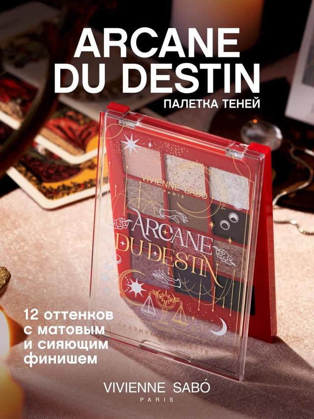 Характеристики Цвет: №01 Объем: 12gr Описание Палетка теней ARCANE DU DESTIN от VIVIENNE SABÓ — палитра образов и настроений, которые можно выразить с помощью одного продукта. С палеткой из 12 оттенков ты сможешь создать множество цветовых сочетаний: тени-спарклы в шести сияющих тонах от нежно-розового до аметистового добавят таинственного и чарующего блеска глазам, а шесть базовых матовых оттенков с акцентами винного, темно-сливового и черного графитового цвета сделают взгляд глубоким и завораживающим. Тени с высокой пигментацией удобно растушевывать и легко наслаивать друг на друга. С ними ты создашь стойкий макияж и будешь уверена в своей неотразимости на протяжении целого дня. Какая карта выпадет тебе сегодня? Загадочная, но уверенная в себе Верховная Жрица или яркая и идейная натура Императрицы. Вдохновляющая и харизматичная Королева жезлов или женственная и чувственная Королева кубков. С палеткой теней ARCANE DU DESTIN ты сможешь создать макияж глаз, отражающий твои внутренние ощущения. Способ применения Нанесите светлые оттенки во внутренний уголок глаза. Тени более ярких тонов растушуйте в складке подвижного века и у внешнего уголка глаза. Создайте мягкие переходы с помощью кисти. Сияющие тени нанесите на середину века подушечками пальцев.