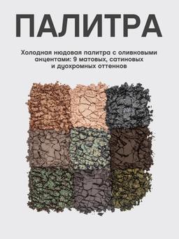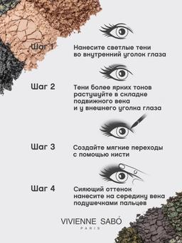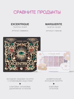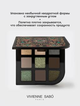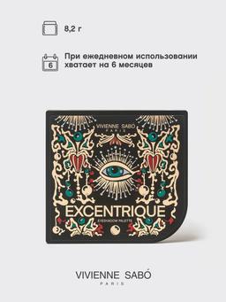 Характеристики Объем: 8.2gr Описание EXCENTRIQUE — палетка теней от VIVIENNE SABÓ с холодной нюдовой палитрой из девяти оттенков с оливковыми акцентами. Палетка, вдохновленная богемными вечеринками французских интеллектуалов и захватывающей атмосферой свободного студенческого квартала Маре в Париже, сочетает три глубоких матовых оттенка для насыщенных смоки и растушеванных стрелок, один базовый тон с матовым финишем, который подойдет для смягчения границ, три сатиновых оттенка для создания плавных переходов и два ярких дуохромных тона, которые сделают неотразимым любой макияж. Благодаря высокой пигментации тени легко наносятся и растушевываются, обеспечивая стойкий и насыщенный цвет. Палетка имеет элегантную упаковку квадратной формы с закругленным углом в сочетании с ярким и современным дизайном. Способ применения Нанеси тени плоской кистью для большей насыщенности, круговыми движениями пушистой кистью растушуй границы от темного к светлому. Для более яркого сияния можно использовать влажный способ нанесения, для этого смочи кисть фиксатором или термальной водой.
