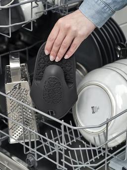 Тёмно-серая силиконовая перчатка для духовки, защищает руки от горячего. Удобная и термостойкая.