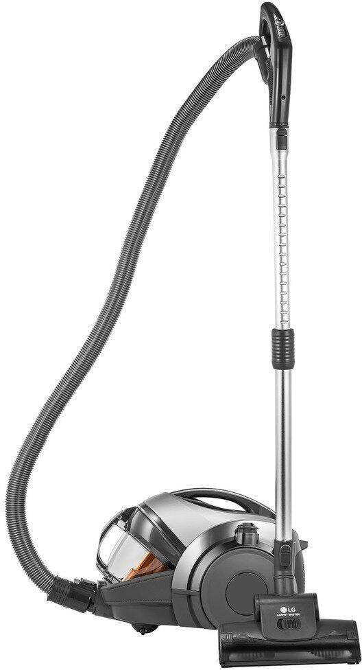 Пылесос LG VC83209UHAS предназначен для сухой уборки. Модель отличается высокой мощностью, простотой использования и обслуживания. Некоторые характеристики: потребляемая мощность: 2000 Вт; мощность всасывания: 420 Вт; объём пылесборника: 1,2 л; уровень шума: 74 дБ; длина сетевого шнура: 6,3 м; радиус действия: 9,3 м; число ступеней фильтрации: 8; выпускной фильтр: HEPA 14; технология прессования пыли: Kompressor X4; тип управления: передвижной регулятор мощности на ручке. Особенности конструкции: вертикальная парковка; управление мощностью на рукоятке; автоматическая смотка шнура; большие колёса; горизонтальная парковка; регулировка мощности. Комплектация: комбинированная насадка пол/ковер, насадка «2-в-1» (для мягкой мебели, насадка-щётка), насадки, пылесос, телескопическая трубка, турбощётка (Carpet Master). Габариты и вес: ширина 28,5 см, высота 30,5 см, глубина 44,5 см, вес 6 кг.