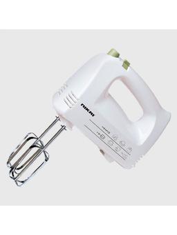 Вид устройства: Ручной миксер повышенной мощности. Мощность: Обычно составляет 300–400 Вт, что позволяет легко замешивать как жидкое тесто для блинов, так и более густое для пирогов. Тип управления: Механический. Переключатель скоростей: 5 скоростных режимов для точной настройки под разные ингредиенты. Функция Turbo: Кнопка для мгновенного включения максимальной мощности (идеально для взбивания белков в густую пену). Материал: Корпус из ударопрочного черного пластика с декоративными вставками из металла. Комплектация: 2 венчика для взбивания (яйца, кремы). 2 крюка для теста (хлебное или дрожжевое тесто). Особенности: Кнопка автоматического извлечения насадок (Eject), защита от случайного выпадения насадок во время работы.