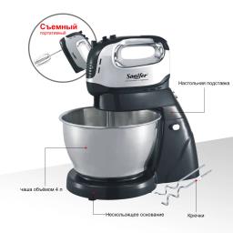 Ручной миксер с чашей Sonifer SF-7008 представляет собой практичный и удобный кухонный прибор, предназначенный для взбивания, смешивания и замешивания различных ингредиентов. Наличие вращающейся чаши значительно облегчает процесс приготовления, освобождая ваши руки. Миксер оснащен несколькими скоростными режимами, позволяющими подобрать оптимальную интенсивность для обработки разных продуктов. В комплекте поставляются стандартные насадки-венчики для взбивания и насадки-крюки для замешивания теста. Легкий и эргономичный дизайн делает использование миксера комфортным.