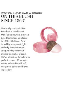Характеристики Цвет: №54 ROSE FRISSON Объем: 2.5gr Описание Запеченные румяна Blusher в маленьких круглых баночках с ароматом розы - символ марки Bourjois с 1863 года. Нежная текстура румян при соприкосновении с кожей превращается в легкую, бархатистую пудру. Румяна невероятно легко наносятся и идеально ложатся. Кожа приобретает здоровый румянец! Нежнейшая кисточка из натурального колонка творит чудеса! Обволакивающий аромат розы, появляющийся при открытии румян Буржуа, создает легкое и игривое настроение, а встроенное зеркальце облегчает процесс нанесение. Способ применения Нанесите небольшое количество румян, улыбнитесь, это лучший способ найти на щеках правильные участки для нанесения румян. Слегка коснитесь зоны «яблок» на щеках и двигайтесь по направлению к уху, интенсивность цвета регулируйте самостоятельно.