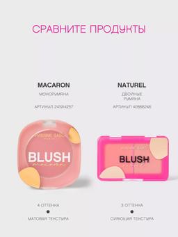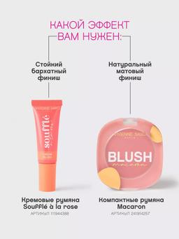 Характеристики Цвет: №02 ХОЛОДНЫЙ РОЗОВЫЙ Объем: 4.1gr Описание Румяна, вдохновленные пирожными макарон, словно маленькие капельки счастья на коже, — нежные и сладкие. Четыре натуральных оттенка с матовым финишем искрятся игрой света, придавая лицу изысканную свежесть и чарующую мягкость. Пудровая шелковистая текстура идеально растушевывается и создает на коже легкий натуральный румянец. Матовая упаковка MACARON в цвет румян с золотыми деталями напоминает французские пирожные макарон. Способ применения Наноси на щеки пушистой объемной кистью легкими круговыми движениями. Для трендового образа также можешь нанести румяна на скулы и растушевать к вискам. Для эффекта как после загара нанеси румяна в центр лица и на переносицу.