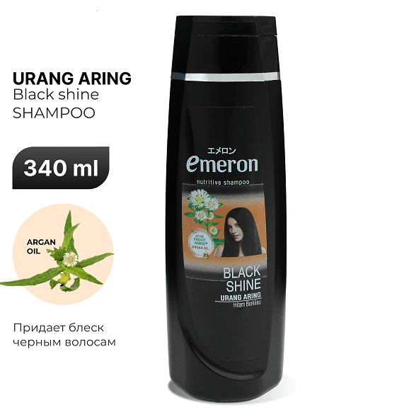 Emeron Black & Shine 340 мл — шампунь для всех типов волос, особенно для темных. Придает волосам глубокий черный оттенок и естественный блеск. Формула с растительным экстрактом urang aring и аминокислотами укрепляет волосы, увлажняет и делает их мягкими. Подходит для ежедневного использования, мягко очищает и не сушит кожу головы.