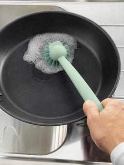 Край щетки позволяет легко удалять остатки пищи. Материал Ручка: полипропиленовый пластик. Кисть: Полиэстер. Можно мыть в посудомоечной машине. Длина: 29 см.